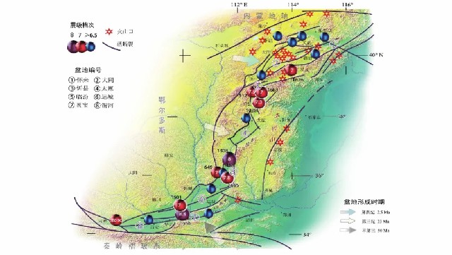 此外,延伸的正断层系还会形成大规模的地堑构造,如汾渭地堑系。该地堑系由大小不一的十个地堑型盆地组成,地堑汇集水资源,且内部的沉积平原成为了耕作的良好场所,因此聚集了大量人口。汾渭地震带同时也是我国历史上地震灾害异常严重的地区,如1556年华县大地震和1303年洪洞大地震均造成了极大的伤亡。