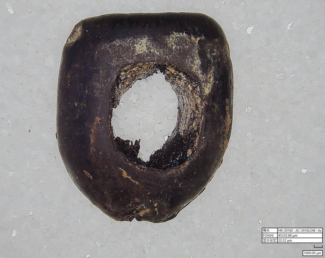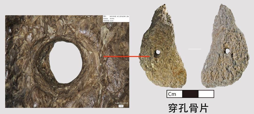 在众多带有刻划痕迹的遗物中,有一件长度仅4毫米的骨片存在疑似分界线的划痕。即在“分界线”的一侧为骨片的自然面,而另一侧分布有无规则的刻划线条。而在去年发现的另一件大小仅3.5毫米左右的骨片,表面带有11道近乎平行的刻划痕。即便是现代人,也很难在这么小的骨片上,划出如此多的痕迹。此外,遗址还出土了穿孔的骨片和橡果。“穿孔的行为比刻划更困难,因为要控制力量,要有相关的技术能力,可能还是一个相对持之以恒的工作。与刻划相比,这是更进一步的行为。”郑喆轩介绍道。