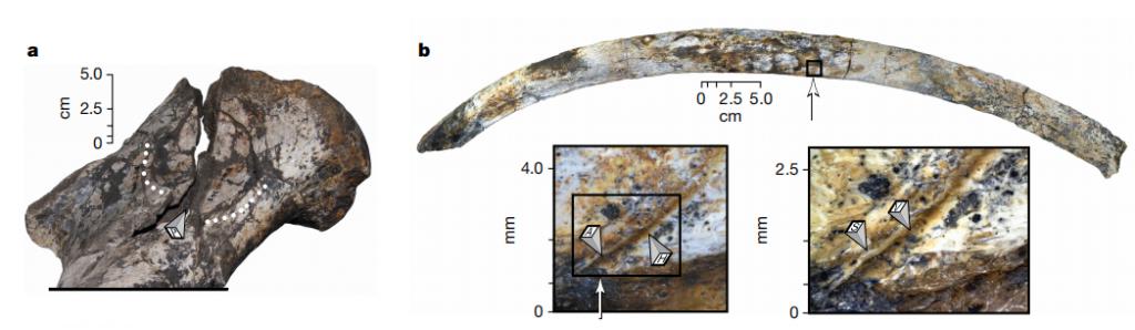 犀牛骨上的人为切割痕迹。图片来源:参考文献 [ 1 ]