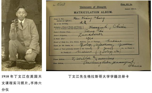 丁文江1911年在英国格拉斯哥大学取得了地质学与动物学的双科毕业文凭,旋即回国。不久,辛亥革命爆发。1912年,他在上海南洋中学教了一年英文及动物学,还以进化论观点编了《动物学教科书》。1913年初,他受工商部矿政司司长张轶欧之聘,去北京任该司地质科科长,为了培养地质人才,他领导筹办了“地质研究班”(后改称“地质研究所”)。他自己和章鸿钊、翁文灏等都在那里任教,丁文江主讲解古生物学”课程,他是在中国讲授“古生物学”课程的第一位教师。