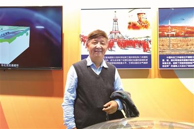 王成善在庆祝改革开放40周年大型展览现场。学校供图