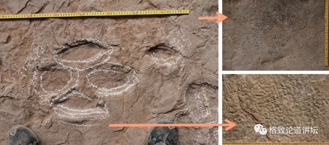 我们研究恐龙足迹,特别像公安的一个学科——刑侦学。这些恐龙足迹能够指示这些肇事者当时的行走形态是在走还是在跑,当时造迹者的种类是蜥脚类还是兽脚类,还有更多的恐龙运动的一些信息。