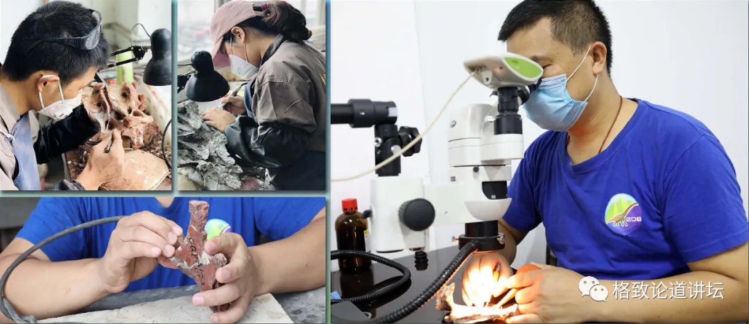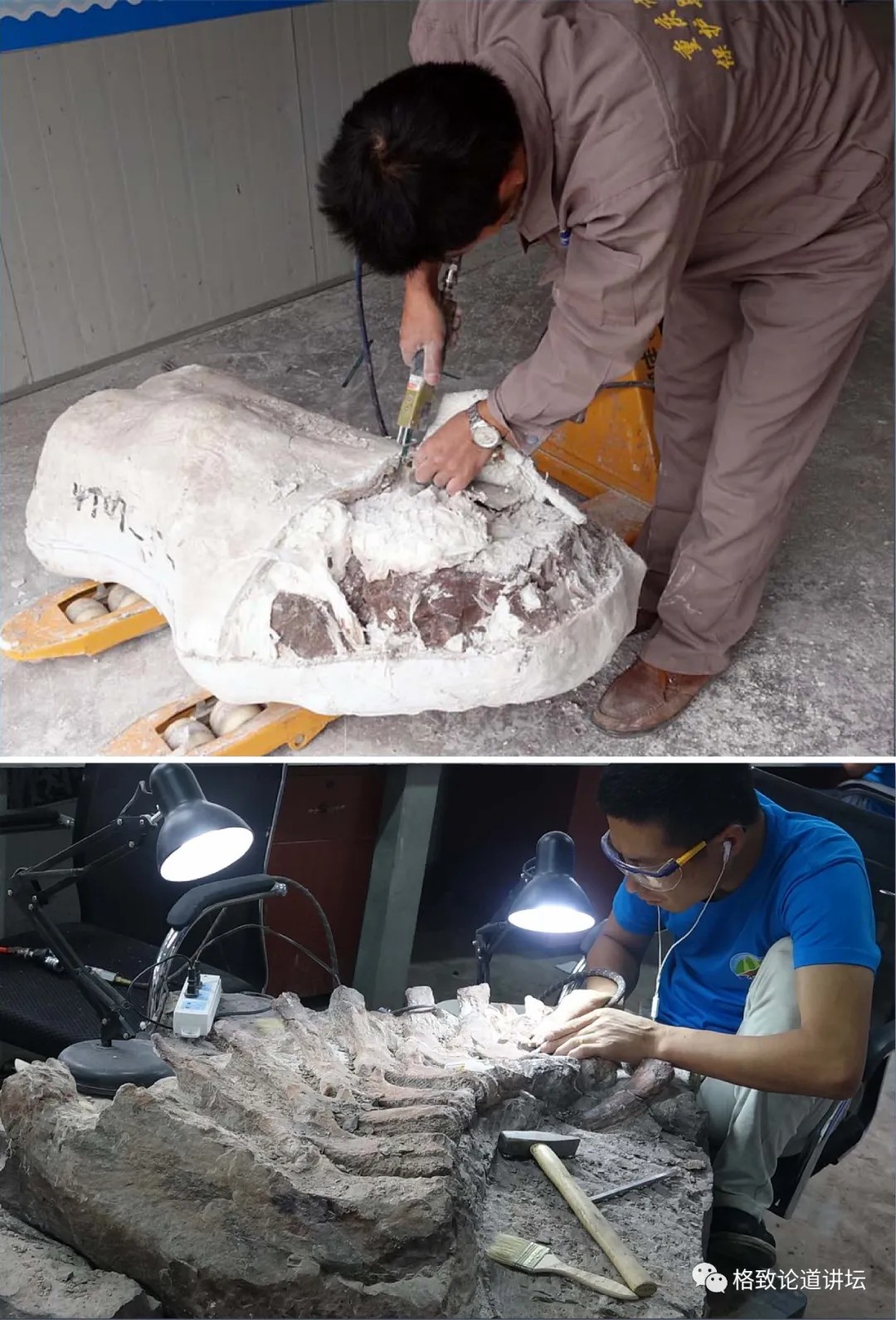 然后拆包、初修以及对化石的精修,才能变成我们科研人员拿到手上的那些恐龙化石,去开展科学研究。