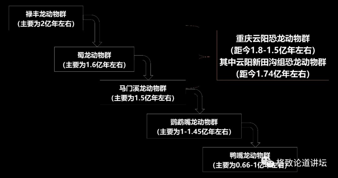 我们在云阳还发现了侏罗纪的新田沟组地层。这个发现非常突出,为什么?因为全世界其他地方都没有在这个地层发现大量的恐龙化石,而在重庆云阳发现了。