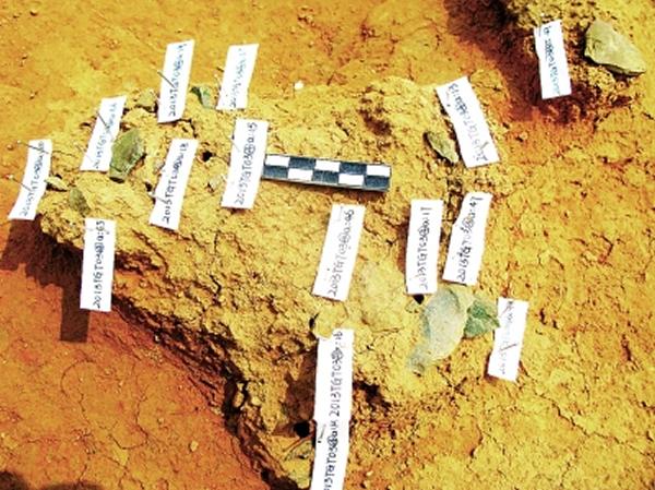 在挖掘出的11个地层中,第一层与第二层是近现代人的活动层;第三层出土了研磨器、砺石,这些文化遗物明显属于新石器时代;第四层,发现了石器制造场和烧骨等用火遗迹,石制品中有大量的石片、石核、碎片等,石制品不仅数量多、分布密度大,而且尺寸很小;第五层、第六层及第七层也出土了大量石制品;第八层至第十一层,颜色均匀的红土变成了网纹状,考古专家介绍说,以前发现的手斧就是出自这种网纹红土层。