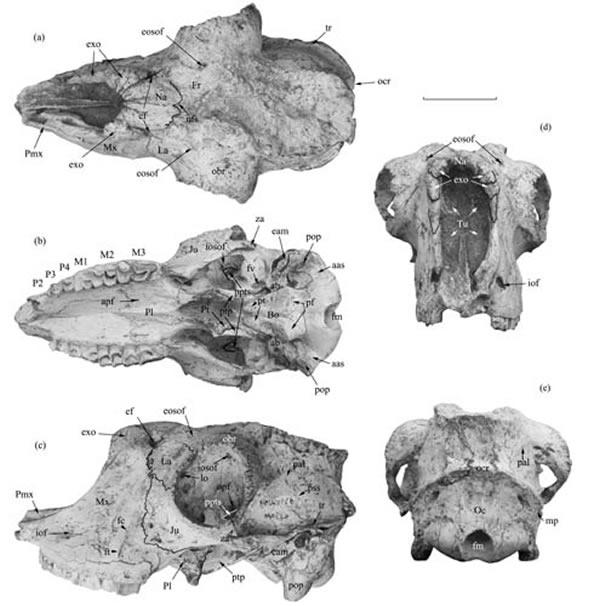 短吻柴达木兽(Tsaidamotherium brevirostrum),雌性头骨(史勤勤供图)