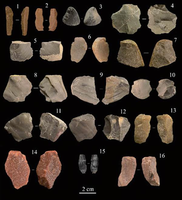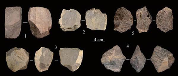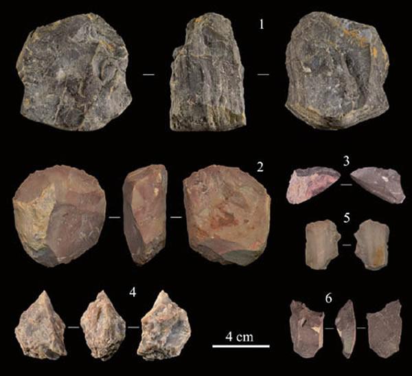 水洞沟遗址第7地点出土的石器;1砍砸器,2-3刮削器,4尖状器,5齿状器,6凹缺器(裴树文供图)