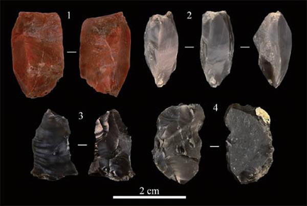 水洞沟遗址第7地点出土的部分石叶和完整石片(裴树文供图)