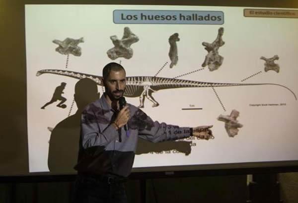 图为阿根廷古生物学家巴布罗·加利纳介绍新发现。