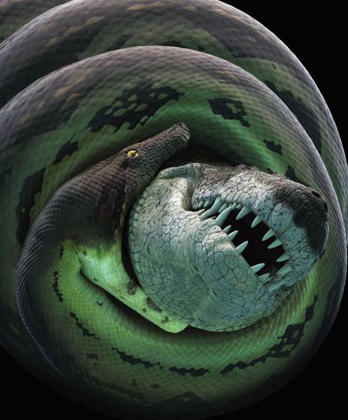 6000万年前4.8米长鳄鱼与17米长巨蟒相遇在雨林中 场面十分惊人