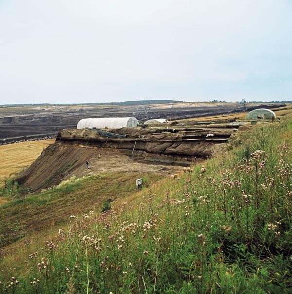 在这个有着1.3万人口的沉寂小镇之外,汉诺威以东约90公里处,是一个巨大的开放煤矿,即德国北部的褐煤矿山之一。这里还拥有丰富的考古遗迹,从1983年起,考古学家就被允许在这里进行“抢救发掘工作”。他们在40米高的采矿机前工作,而这些采矿机正在切断地球数百万年的地质历史。