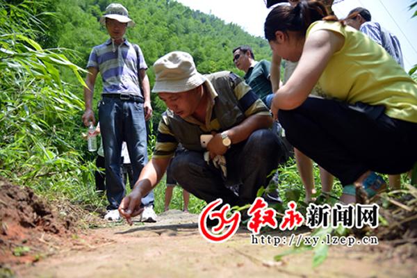 去年6月,叙永县大石乡新阳村村民张朝贵请邻里帮忙在桫椤沟砍竹子,中途运送的休息时间,几个孩子在石头间蹦来跳去,累了便折断溪边芦苇挑拨溪边石头上的沙子,“这里有个脚印,这是什么脚印哦?”张朝贵的孩子嚷着跑到身边,拉着他前去看那是什么脚印。