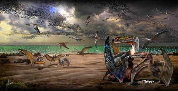 1亿多年前,新疆哈密天山脚下,翼龙们生活在湖畔,翱翔于空中。然而,天有不测风云,湖泊中突发大型风暴,导致它们遭到毁灭性灾难,发生了集群死亡。这一灭顶之灾,来势迅猛,以至于翼龙和它们产在湖岸沙滩潮湿软泥中的蛋,都被快速埋藏在一起。