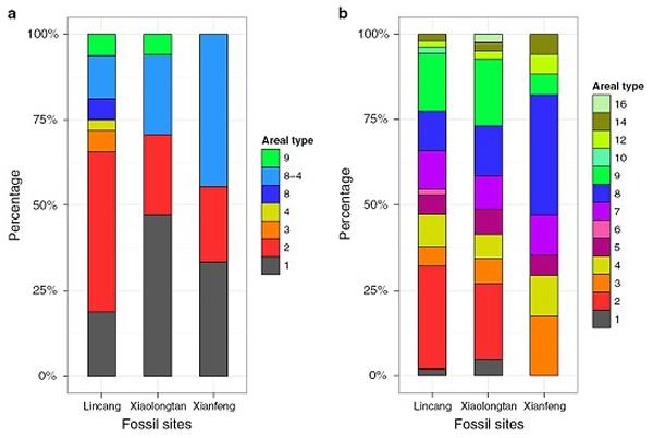 中国科学院西双版纳热带植物园古生态组詹克平副研究员等人利用热力学原理重建了云南晚中新世的临沧、先锋和小龙潭三个植物群的古海拔,结果表明晚中新世云南的地貌已经有了较大的分化,临沧植物群和小龙潭植物群的古海拔明显低于现在,分别为214米和1050米,而先锋植物群的古海拔和现在非常相似,为1936米。论文进一步探索了古海拔引起地貌的分异导致三个植物群区系成分分异的相关性。对比这三个化石植物群物种组成,尽管有七个属同时存在于所研究的三个植物群中,但是从热带分布属来看,云南临沧植物群(64.1%)、小龙潭植物群(53.7%)和先锋植物群(47.1%)比例随古海拔的升高而逐渐递减。古海拔重建结果表明,晚中新世时期的云南北部已经抬升到现在的高度,而云南南部在晚中新世之后经历了明显的抬升过程。正是由于抬升过程的地区差异,阻碍了南方热带分布植物类群的向北扩张,从而逐步形成了云南现代植被的空间分布格局。本研究系首次结合古海拔重建来探讨植被分布规律,对于认识青藏高原的抬升对生物多样性的影响有着重要的意义。