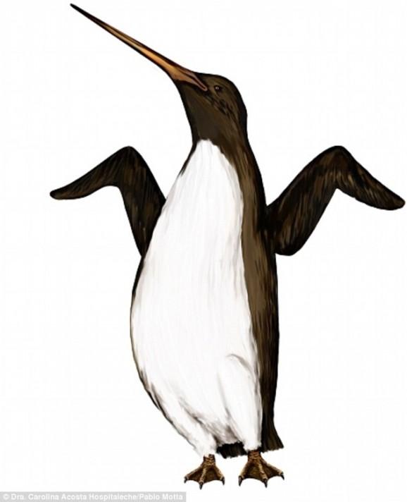 科学家们称这种古代鸟类为“巨型企鹅”(colossus penguin),它们约生活在距今3700多年前,身高可达2米,体重121公斤。据悉,地球上现存最高的企鹅物种是帝企鹅,平均身高为1.35米。