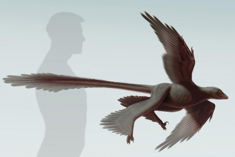 渤海大学古生物学中心主任韩刚:它长的这个羽毛是非常特殊的,几乎和现在鸟类的羽毛是极其相近的。通过它这个羽毛生长,四个翅膀羽毛的特征,来判断它是初步的具备了一些滑行,或者从地面直接起飞的能力。