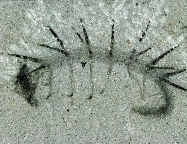 (化石网报道)据新浪科技(徐愚):这个外形有些奇怪的化石看起来一种类似蠕虫的生物,然而身上的刺、头部以及腿部都表明或许并非如此。