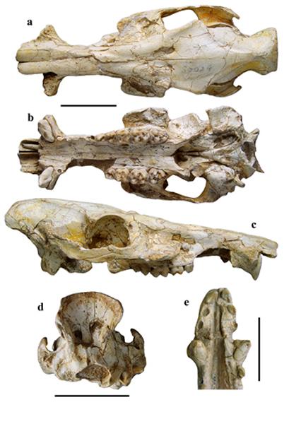 临夏弓颌猪(Chleuastochoerus linxiaensis)头骨,正型标本 (侯素宽供图)