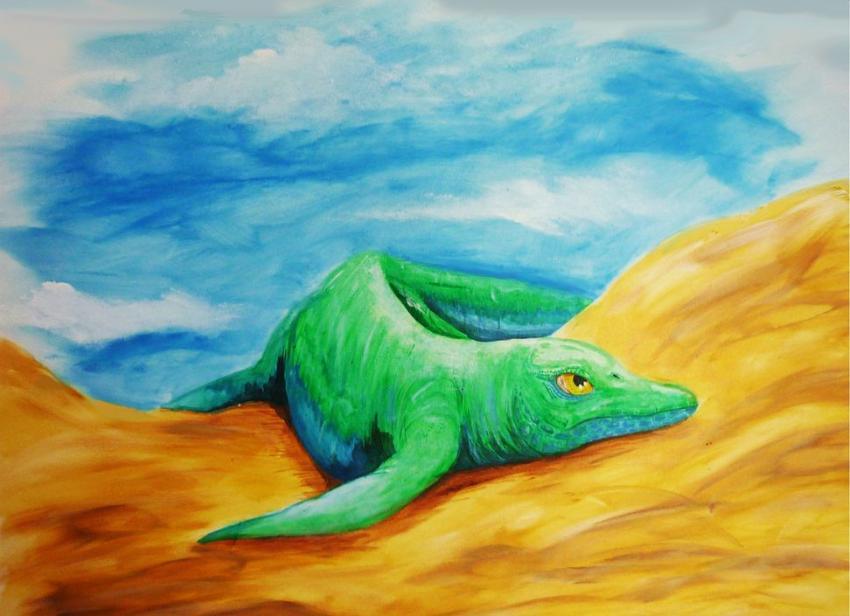 复原图:在中国安徽发现首个两栖鱼龙化石,生活在2.48亿年前的三叠纪时期(化石网配图)