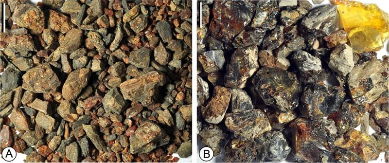 (化石网报道)据中国科学院南京地质古生物研究所:琥珀晶莹剔透,适于加工各类工艺品,深受人们喜爱。保存有昆虫等有机体的琥珀更是古生物学研究的绝佳材料。众所周知,琥珀是植物树脂的化石。早在唐朝,诗人韦应物就曾为琥珀赋诗曰:“曾为老茯神,本是寒松液。蚊蚋落其中,千年犹可觌”,提出琥珀来源于裸子植物的树脂。这代表着古人对于琥珀来源的朴素认识。事实上琥珀的来源并非局限于裸子植物。生物标志物研究发现,植物树脂中的萜类化合物具有类群特异性,并且能够长时间保持稳定的骨架结构。因此植物树脂化石即琥珀中保存的萜类化合物可以作为识别琥珀来源的生物标志物。通过生标分析,目前已提出的琥珀来源植物类群有裸子植物松科(缅甸琥珀)、柏科(抚顺琥珀)、金松科(波罗的海琥珀)、南洋杉科,被子植物豆科(多米尼加琥珀)、橄榄科、龙脑香科(印度Cambay琥珀)、使君子科、金缕梅科以及已绝灭的松柏类植物掌鳞杉科(黎巴嫩琥珀)。
