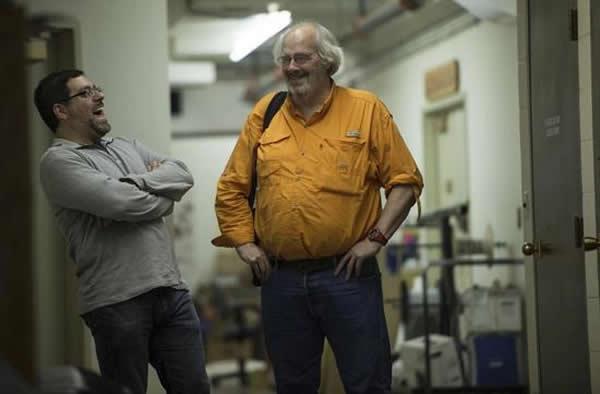 左为史密森尼自然历史博物馆的马修·卡拉诺,右为古生物学家杰克·霍纳。霍纳希望利用从鸡身上提取的DNA复活一只小型恐龙。