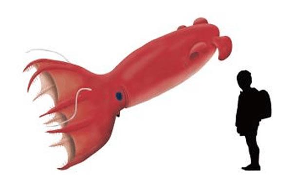 据称,墨鱼全长预计为10米至12米,可与现有无脊椎动物中体积最大的大王乌贼相匹敌,甚至可能更大。章鱼全长预计为2.4米。