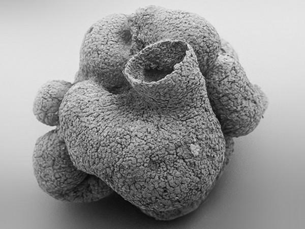 一个研究小组现在声称上图中在中国南部发现的那个可以追溯到6亿年前,即前寒武纪期间,的小化石是已知的最古老的多孔动物。这个小生物的高和宽分别刚刚超过1毫米多一点,也就是一个小珠子的大小,今天的《美国国家科学院院刊》在线版报道说。它发现于一个富含磷的地质结构中,已知这种结构可以将动物化石保护在一个很好的状态里。