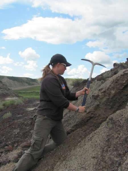 (化石网/歆塬 编译)现今加拿大阿尔伯塔德兰赫勒市周围的干旱荒漠草原,在远古时代曾是潮湿的内陆海岸亚热带森林环境,栖息着众多的恐龙、龟、鳄鱼和小型哺乳动物等生物。来自卡尔加里大学的古生物学家Annie Quinney和Darla Zelenitsky通过对红鹿河峡谷(Red Deer River valley)岩石中蕴含的7200~6700万年前的古土壤进行研究后发现,这一切在7100万年前发现了剧变,在500万年间,寒冷与干旱取代了这里曾经的温暖湿润气候,内陆海也随之消失。通过计算,结果显示温度和降水在几千年内快速下降,而最为寒冷的冰期则持续了长达50万年。对古气候变迁的研究有助于研究者理解气候突变对生物存在何种影响。