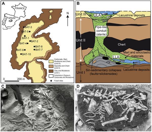 这个“肉食动物集体坟墓”被古生物学家称为Batallones-1化石地点,位于西班牙马德里盆地(Madrid Basin),形成于晚中新世晚Vallesian期。