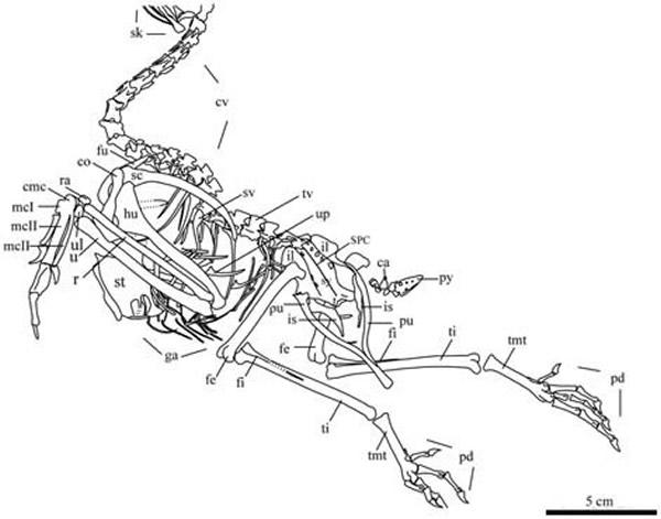(化石网/兽王 编译)中国科学院古脊椎动物与古人类研究所的周爽、周忠和和Jingmai O’Connor在2013年8月28日的《历史生物学:国际古生物学杂志(Historical Biology: An International Journal of Paleobiology)》杂志杂志上发表了一篇题为《热河生物群一个新的食鱼性今鸟型类(A new piscivorous ornithuromorph from the Jehol Biota)》的研究报告,这篇研究报告命名了鸟纲(Aves)今鸟型类(Ornithuromorpha)一个新属新种——李氏食鱼鸟(Piscivoravis lii gen. et sp. nov.),周爽等人认为李氏食鱼鸟胃部保存了鱼类的骨骼化石,表明李氏食鱼鸟是鱼食性的鸟类。