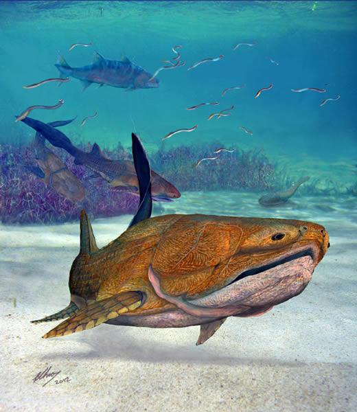 中国科学院古脊椎动物与古人类研究所的朱敏等人在9月25日的英国《自然(Nature)》杂志上在线发表了一篇题为《一个具有类似硬骨鱼类的颌骨的志留纪盾皮鱼类(A Silurian placoderm with osteichthyan-like marginal jaw bones)》的研究报告,这篇研究报告命名了有颌超纲(Gnathostomata)盾皮鱼类(placoderm fish)鱼类的一个新属新种——初始全颌鱼(Entelognathus primordialis gen. et sp. nov.),初始全颌鱼代表第一个具有膜质外骨骼的颌骨的干群有颌类,这个特征是以前仅限于硬骨鱼类的特征,表明软骨鱼类和硬骨鱼类的最后的共同祖先有一个大分子的膜质外骨骼,并提供一个冠群有颌类的分歧的新的研究框架。