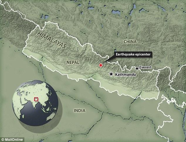 本图显示,尼泊尔正位于印度板块和欧亚板块交界处。印度板块正在以每年数厘米的速度向北漂移,这可能会导致毁灭性的地震。