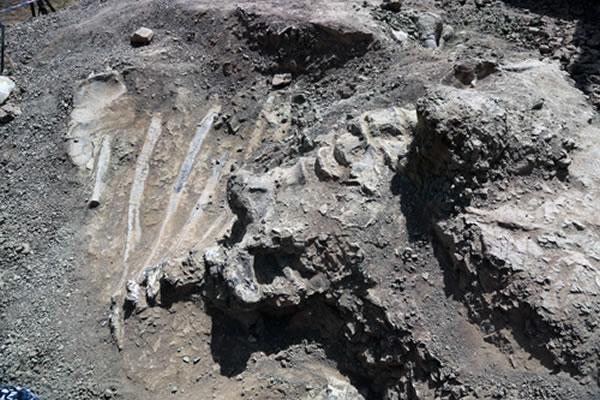 (化石网报道)据光明日报辽宁北票5月5日电(记者 毕玉才 通讯员 张春红):“目前露出4节颈椎骨,背椎尾椎等有待进一步挖掘。从露出的化石推断,这是辽宁省迄今发现的立体保存最完整的大型恐龙化石。”5日下午,在辽宁省北票市大板镇孤家村哑巴沟组的恐龙化石挖掘现场,沈阳师范大学辽宁古生物博物馆教授周长付指着化石对记者说。