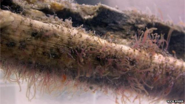 食骨蠕虫会将沉落在海底的鲸鱼骨头吃掉