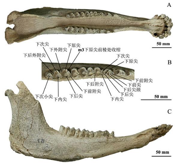 龙担短角丽牛(Leptobos brevicornis)下颌 (李刈昆供图)