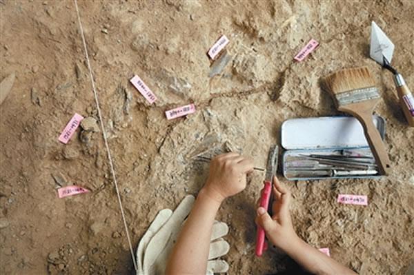 昨日,工作人员在周口店猿人洞进行发掘。当天,周口店遗址第1地点(猿人洞)抢救性清理发掘成果发布。
