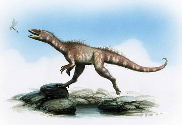 这种恐龙生活在大约两亿年前,是迷你型霸王龙物种,可能身高仅50厘米,长着类似锯状刀片的牙齿。研究人员指出,它是体型较大的霸王龙的远古祖先,霸王龙生活在0.85-0.65亿年前。