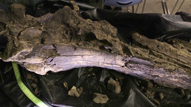 这块长度大约2公尺的巨大头骨,在河床里清晰可见而且相当完整,在这类化石当中实属罕见。