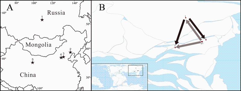 最近,南京古生物所硕士研究生王贺在张海春指导下,对酒泉盆地赤金堡组首次发现的直翅目昆虫化石进行了研究。该化石归入鸣螽科Parahagla sibirica Sharov, 1968。基于新材料,对该种的鉴定特征进行了修订,详细讨论了其所属层位的时代,并提出了该种可能的迁移途径。P. sibirica的地层分布较为局限,除玉门赤金堡组外,还见于俄罗斯外贝加尔地区Zaza组和冀北-辽西义县组。研究表明甘肃酒泉盆地赤金堡组可与义县组上部—九佛堂组下部对比,时代为早阿普特期。而Zaza组的时代尚存争议,因此提出P. sibirica两种可能迁移路径:(1) P. sibirica在阿普特期早期最先出现于中国冀北-辽西一带,之后分别向西北迁移至俄罗斯外贝加尔地区和向西迁移至中国甘肃酒泉地区;(2) P. sibirica在阿普特期之前既已出现于俄罗斯外贝加尔地区,在阿普特期向南迁移至中国北方。