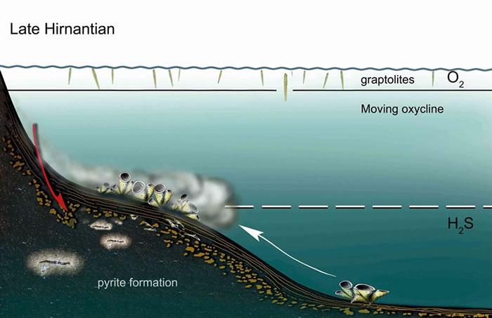 赫南特晚期海绵动物群迁移及埋藏模式图