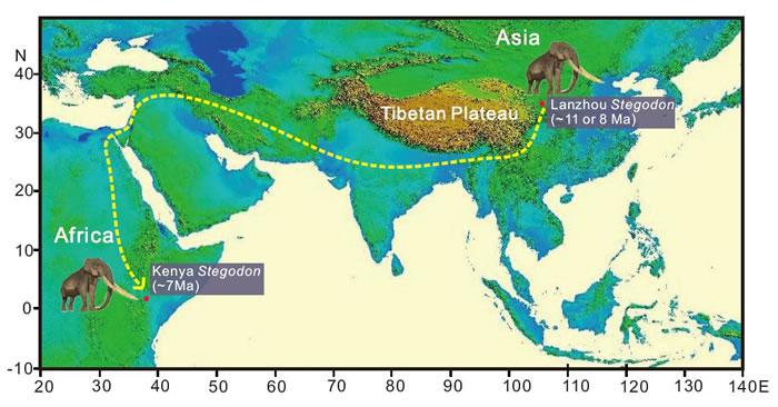 这一研究表明邢家湾动物群蕴含的剑齿象化石年代至少800万年,也可能达到了1100万年,这两个年代都比非洲的剑齿象出现的年代要早,是目前全球最早的剑齿象化石。因此这为剑齿象起源亚洲的传统观点提供了新的年代学证据,而且剑齿象应该是从我国兰州盆地走出,逐步迁移到非洲的(图2)。此外,在邢家湾动物群的哺乳动物中既有森林型物种,也有草原型物种,这说明兰州盆地在晚中新世具有森林和草原混合的植被类型,与现今干旱–半干旱草原植被类型显著不同。
