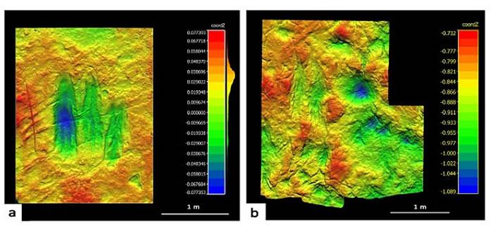 他发现60多个恐龙抓痕,一些抓痕大小接近浴缸,经证实这些抓痕是食肉恐龙和食草恐龙留下来的。其中最大的砂岩遗址可追溯至0.66-1.45亿年前白垩纪时期,恐龙用爪子挖出的爱巢占地750平方米。在这里研究人员发现抓痕的特点,由双平行槽线和抓痕构成,中间留下脊状突起。他们认为,抓痕不同尺寸和深度可以表明不同种类兽脚类恐龙的交配行为,这里是它们进行交配的地点。