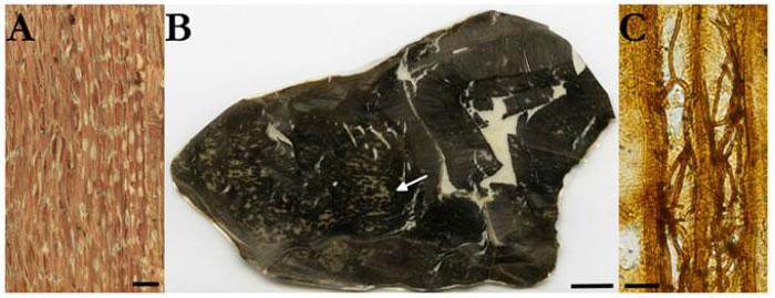 在石炭纪之前的泥盆纪,地球上就已经出现了森林,当时构成森林的一种植物美木(Callixylon),在美木的疏导组织细胞中,保存有真菌。