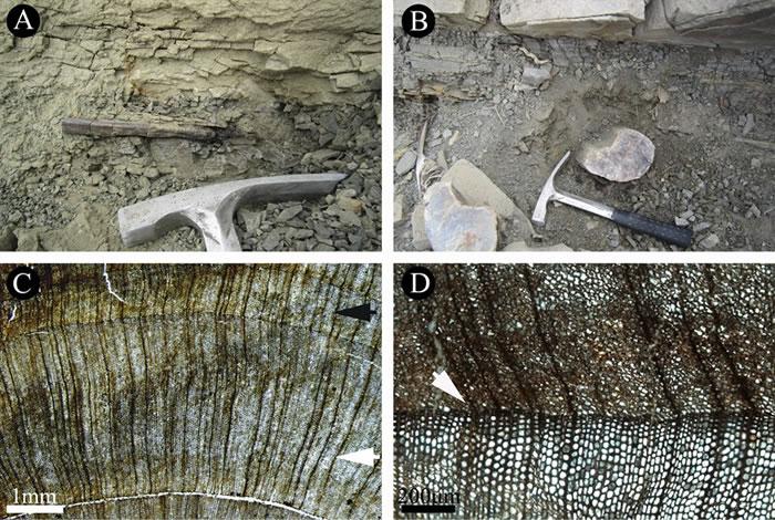通过近年来的工作,南京古生物所“准噶尔盆地三叠纪地层研究”课题组的万明礼博士、唐鹏副研究员、王军研究员等首次报道了新疆准噶尔盆地发现的晚三叠世诺利期的一种裸子植物化石木材,命名为准噶尔异木(Xenoxylon junggarensis)。Xenoxylon属植物是中生代陆地生态系统和古气候的重要且有效的生物指示分子之一。综合古植物学和孢粉学的研究资料表明,准噶尔盆地晚三叠世诺利期气候较为温暖、潮湿,并具有季节性变化。经过对同层位的化石木材生长轮年敏感度(AS)和平均敏感度(MS)的统计,结合最新的古地磁资料和植物生理学分析,表明由于该时期准噶尔盆地处于北半球中-高纬度地区,光照强度的季节性减弱,造成植物形成层的活动逐渐减缓并停止,导致木材次生生长过程中形成生长轮。