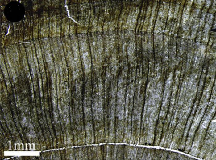 准噶尔盆地在晚三叠世时期位于北半球中-高纬度地区,光照强度的季节性减弱,造成植物形成层的周期性活动,形成有规律的年轮(生长轮)。根据对这些硅化木植物生长轮年敏感度(AS)和平均敏感度(MS)的研究,研究人员推断准噶尔盆地当时气候较为温暖、潮湿,并具有明显的季节性变化。(化石网/洪河)