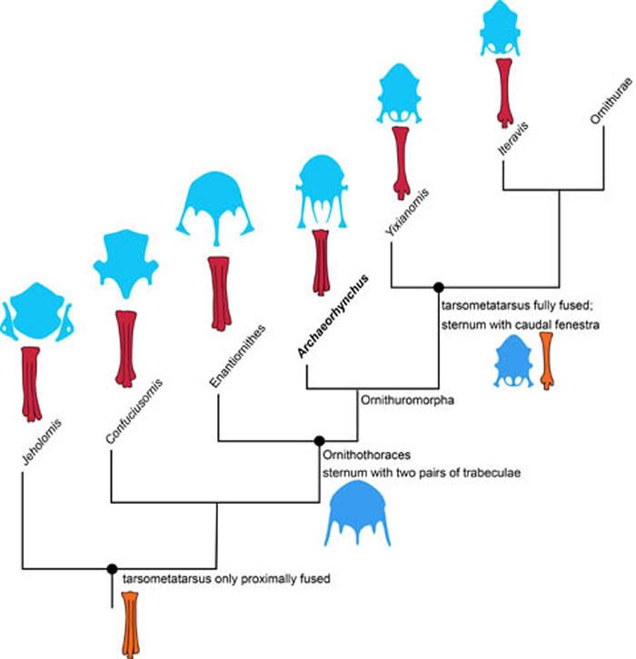 胸骨和跗蹠骨形态在原始鸟类的演化(王敏供图)