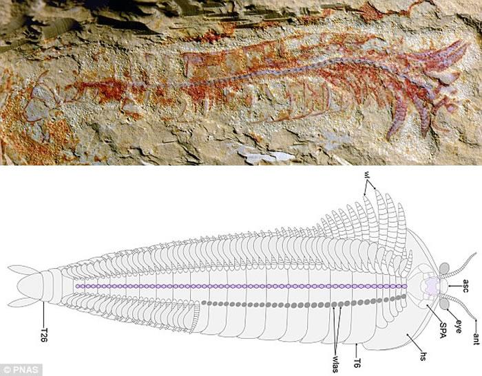 据悉,节肢动物中枢神经系统包含着缩小大脑和类似串珠的链状互连神经组织。这个生物化石是考古学家使用细针细致地将周围岩石层剥离,最终发现这种远古生物的身体坚硬部分和软组织化石部分。