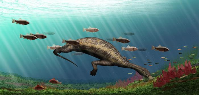 (化石网报道)据参考消息网:英媒称,据最新出土化石证据显示,一种生活在2.42亿年前鳄鱼大小的物种是最早的已知素食海洋爬行动物。