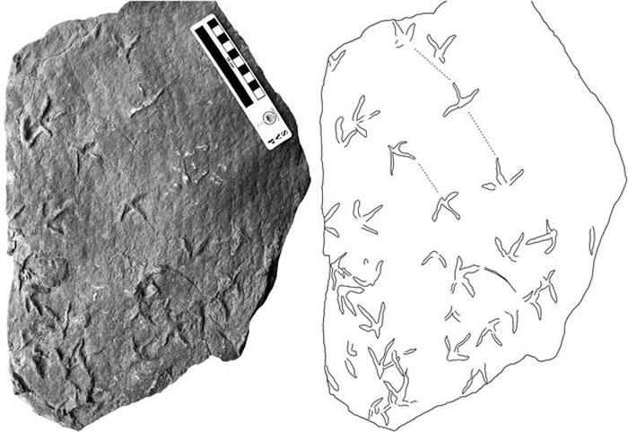 鸟类足迹主要分布于中生代与新生代,相比非鸟恐龙足迹,数量要少得多,因此非常珍贵。我国大型的古鸟类足迹群落主要分布于新疆乌尔禾和广东三水。这些鸟足迹的发现有效弥补了当地缺乏鸟类化石记录的缺憾,重构了一个个精妙的古世界。