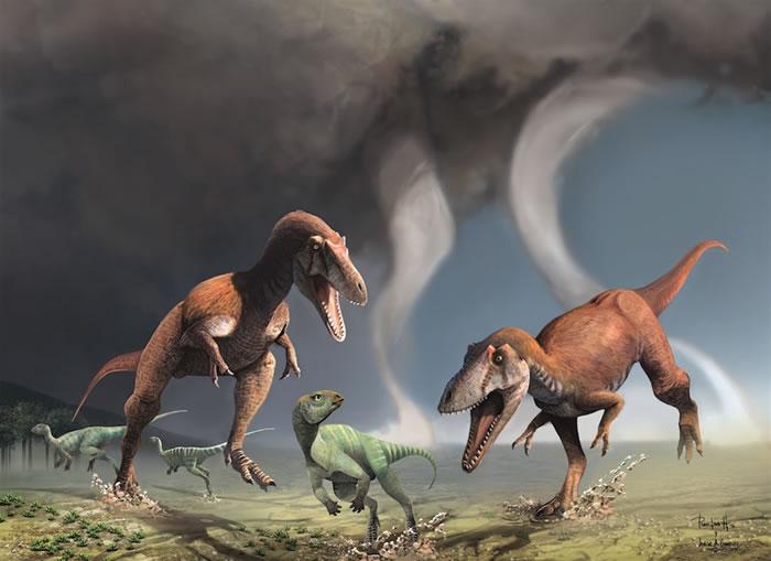 科学家团队说,这种两腿动物长20至26英尺,但双臂只长约2英尺。它属于类似其他肉食恐龙的兽脚亚目,这类别包括霸王龙。